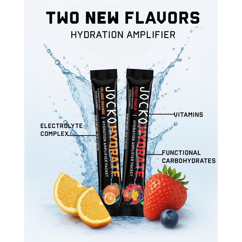 Jocko Fuel Hydrate Electrolytes Powder Packets Low Sugar - Hydration Amplifier Packets for Recovery, Dehydration, & Exercise - with Vitamins B6, B12 & C (16 Packets) Fruit Punch
