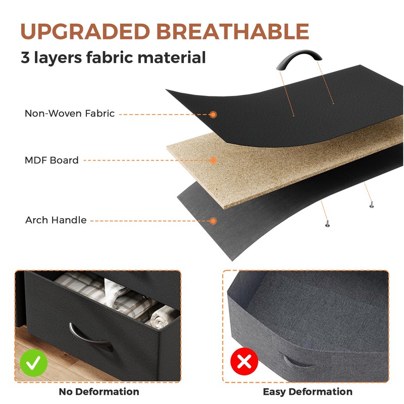 - Easy To Assembly: Enjoy hassle assembly with straight forward instructions included. 1-2 people can assemble in about 20 minutes. If you experience any issues with our fabric dressers for bedroom, we would be delighted to help you find a solution and reply to your email within 24 hours