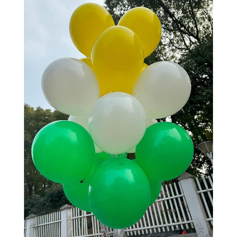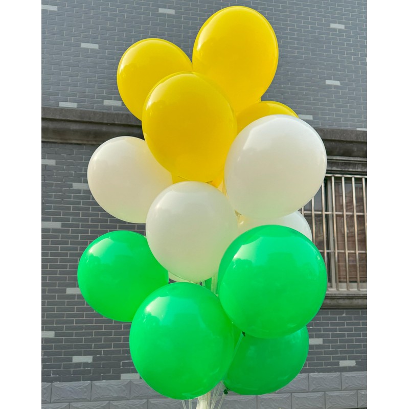 - Diversity:Green Balloons:34 pcs,White Balloons:34 pcs,Yellow Balloons:34 pcs,Size:12 inch.