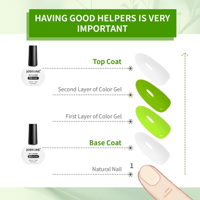 JODSONE 2 Bottles 10ml Base Coat Top Coat Gel UV Set, No Wipe Base Coat & Top Coat, Bright Surface at Home, DIY Nail Salon, Girls, Gift