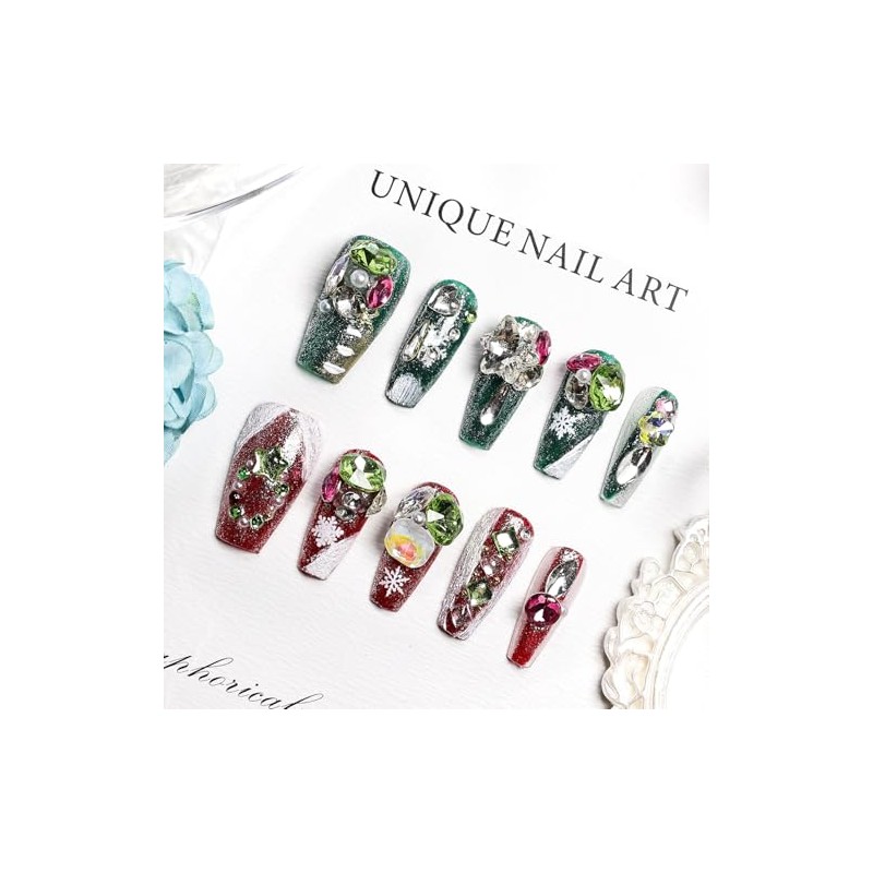 JODSONE Press on Nails Christmas Collection Square Handmade 3D Fake Nail Tips...