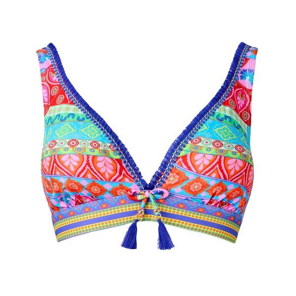 Joe Browns Women's Recycled Content Patchwork Tassel Trim Bikini Top, Blue Multi, 14