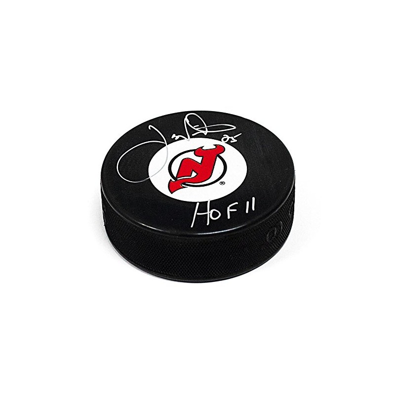 Joe Nieuwendyk Signed New Jersey Puck with HOF Note. This puck is signed and inscribed with HOF 11 by Joe Nieuwendyk.