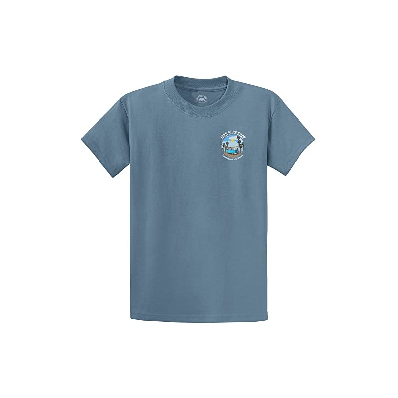 Joe's USA - Men's Surf Bus Logo Heavy Cotton T-Shirt, Small - Stone Blue