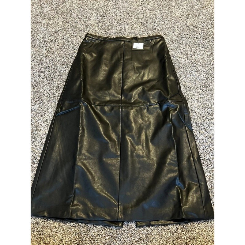 Joe’s womens joes black leather midi skirt with slit size M $218
