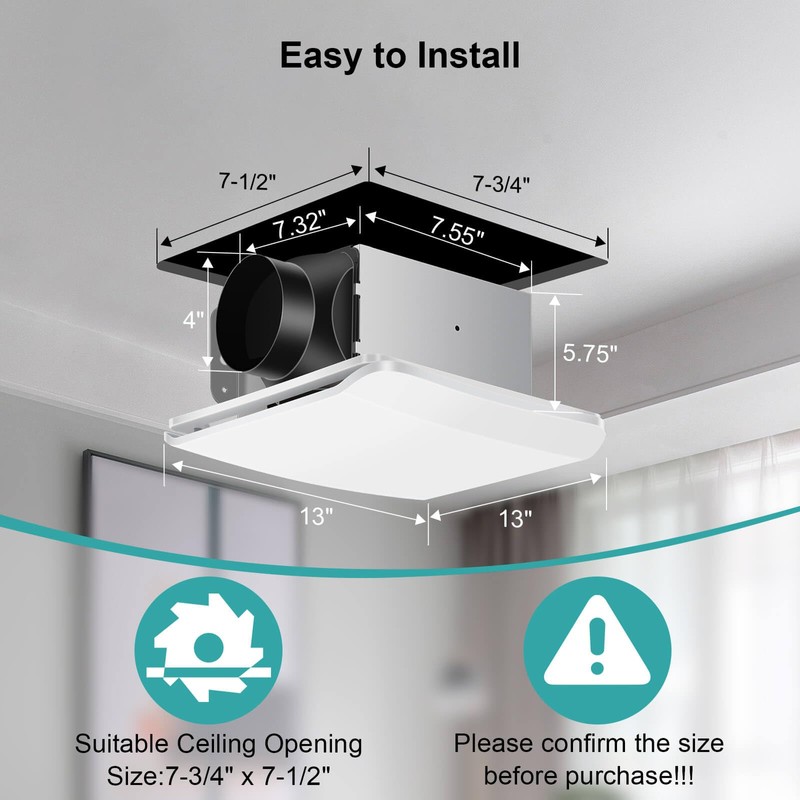 - 【Precision Fit Installation】 JOEAONZ bathroom extractor fan equits 13x13" flange covers standard cutouts (7.5x7.75"). Includes 4" duct connector and detailed instructions. DIY-friendly design saves 50% installation time compared to traditional bathroom vent fans.