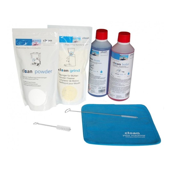 - Includes 1 x Clean Powder 500 g, Clean Grind 500 g, Clean Steam 500 ml and Clean Boiler 500 ml