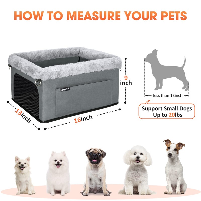 JOEJOY Deluxe Dog Booster Seat with Sturdy Metal Frame and Safety Leash for Small Pets up to 20 lbs - Portable Puppy Dog Car Seat with Thick Cushion and Storage Pockets for Small Dogs