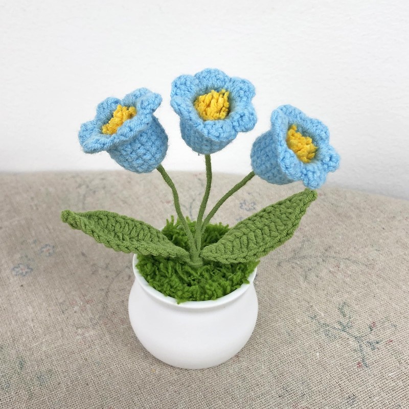 Joekaran Crochet Flowers Cute Little Potted Flower, Gift for Birthday, Teacher’s Day, Graduation, Anniversary, Christmas, Decor for Car Dashboard,Home Office Decoration (Blue Lily of The Valley)