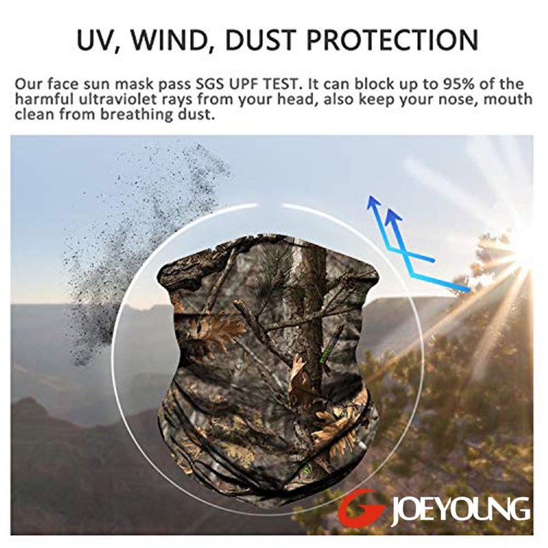- UV, SUN, DUST PROTECTION:This joeyoung head wear pass SGS UPF TEST.You will discover that the ultraviolet rays will be blocked under the burning sun when going out for fishing, hunting,cycling, motorcycling, running,or other activities.Wearing our heard wear, balaclava, face mask, or neck gaiter will block up to 95% of the ultraviolet rays from your head, face, neck and ears to further protect your skin from being over exposed to the rays of the sun.