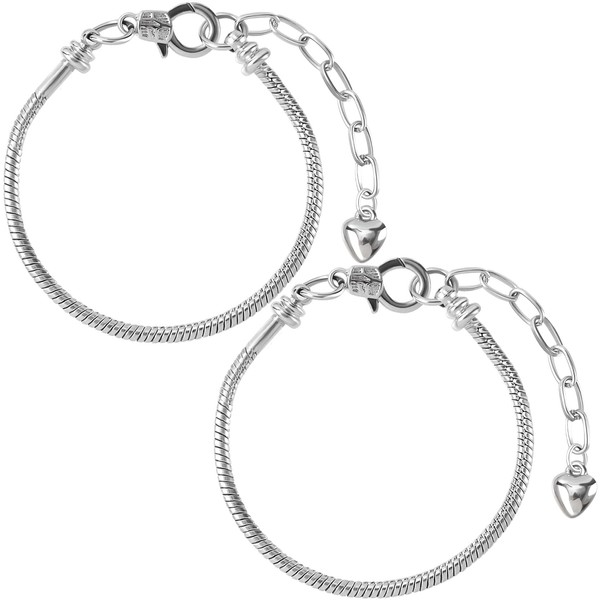 Joez Wonderful 2pcs Snake Chain Bracelet, Adjustable Charm Bracelets with Heart Shape Extender Chain, Copper Bracelet Chain for Women Jewelry Making