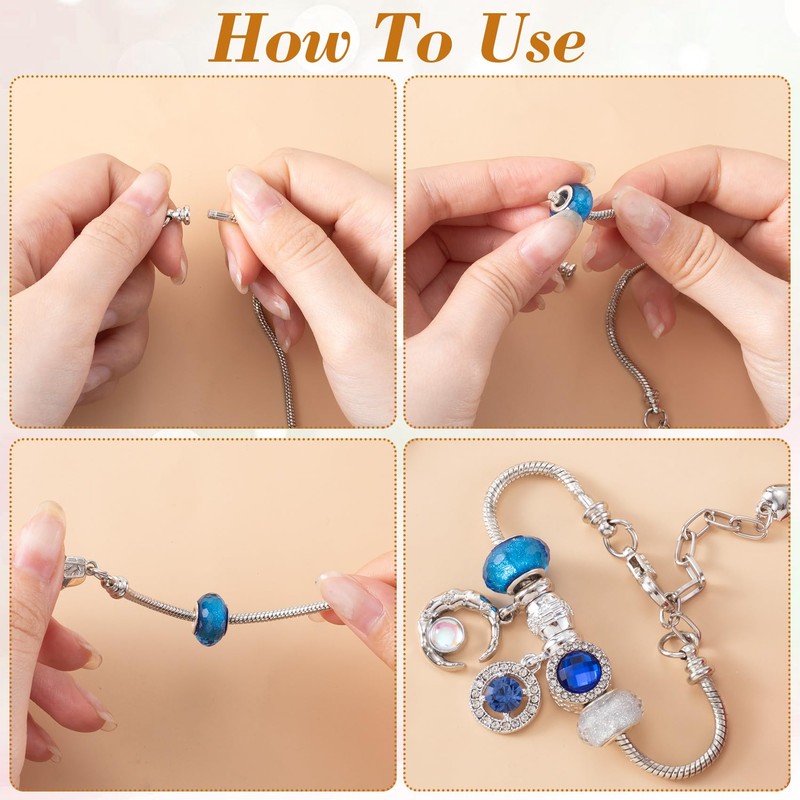 【Easy to Use】Twist to remove the clasp, add the beads you like, such as cute beads, pendants, ornaments, or other jewelry accessories, then rotate to connect the clasp and the bracelet is completed.