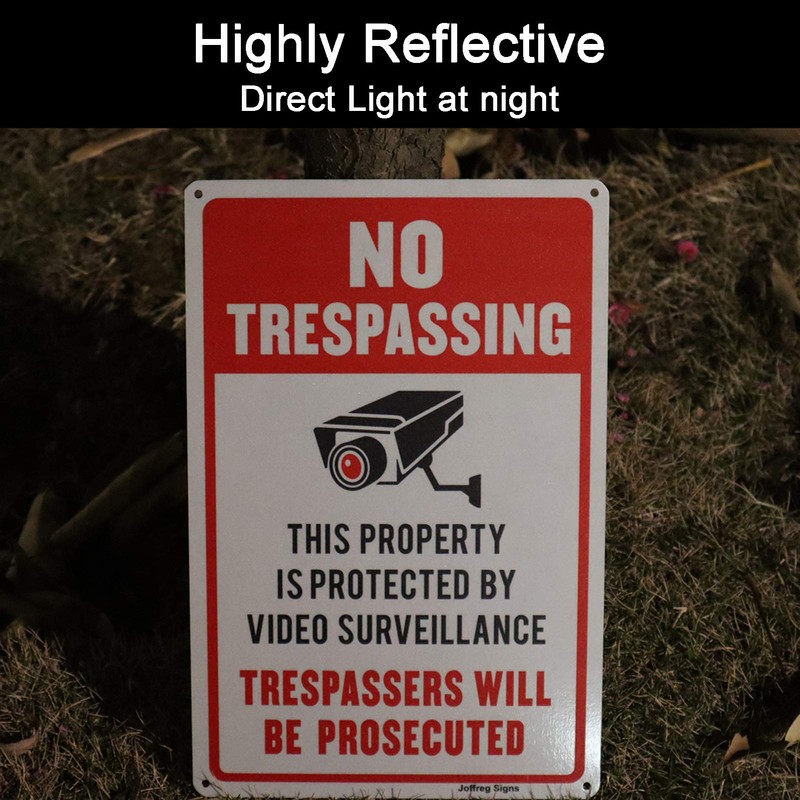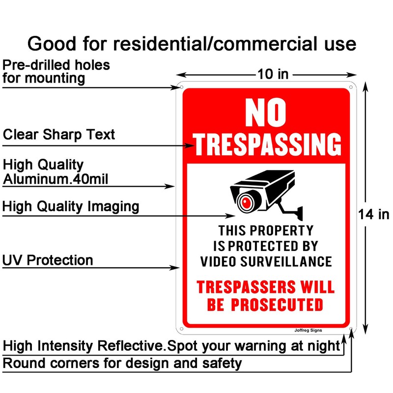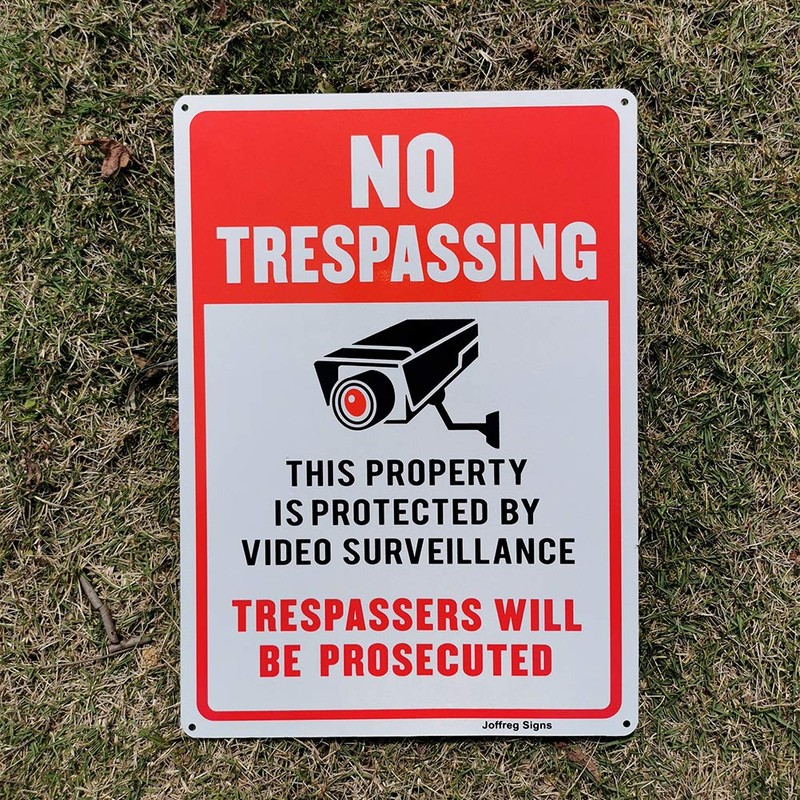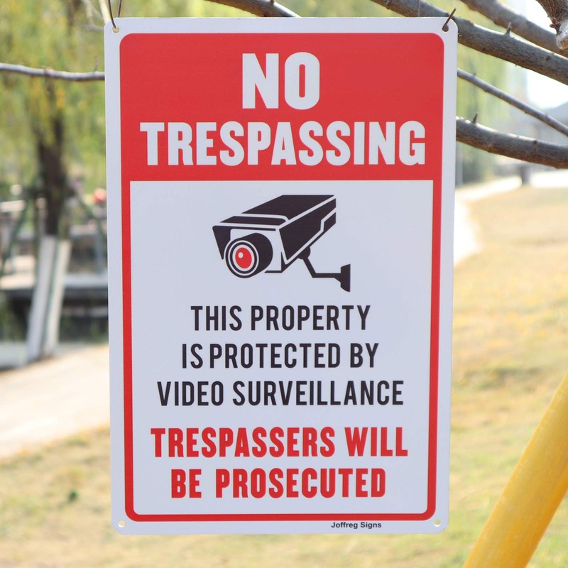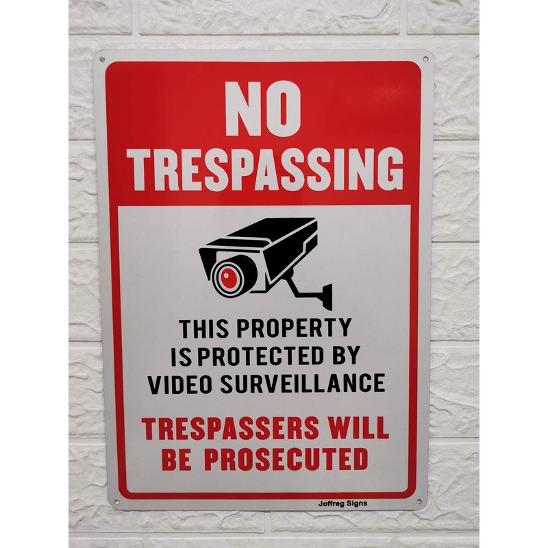 Joffreg Video Surveillance No Trespassing Sign, CCTV Security Camera,14 x 10 ...