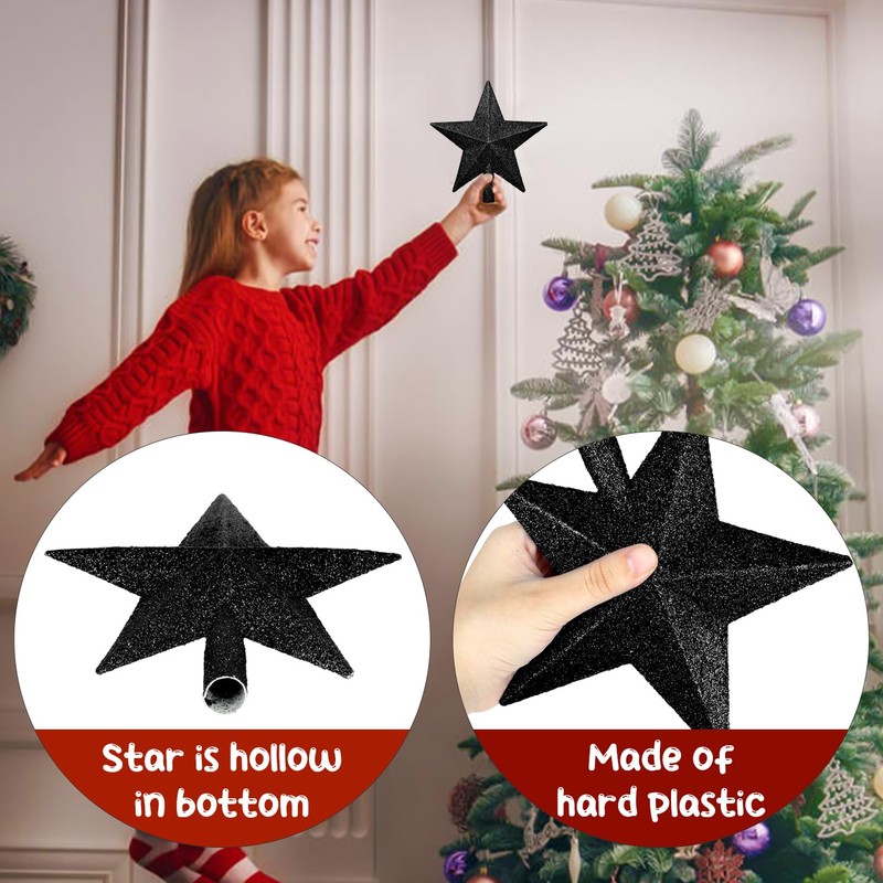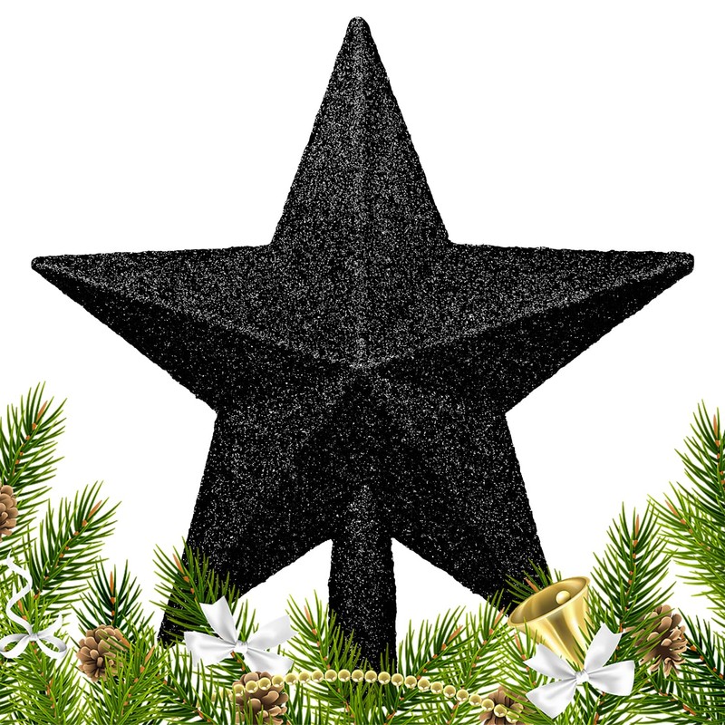 JOFONY 20CM Christmas Tree Topper, Black Christmas Tree Star Tree Topper Glitter Christmas Tree Top Star for Christmas Tree Decoration