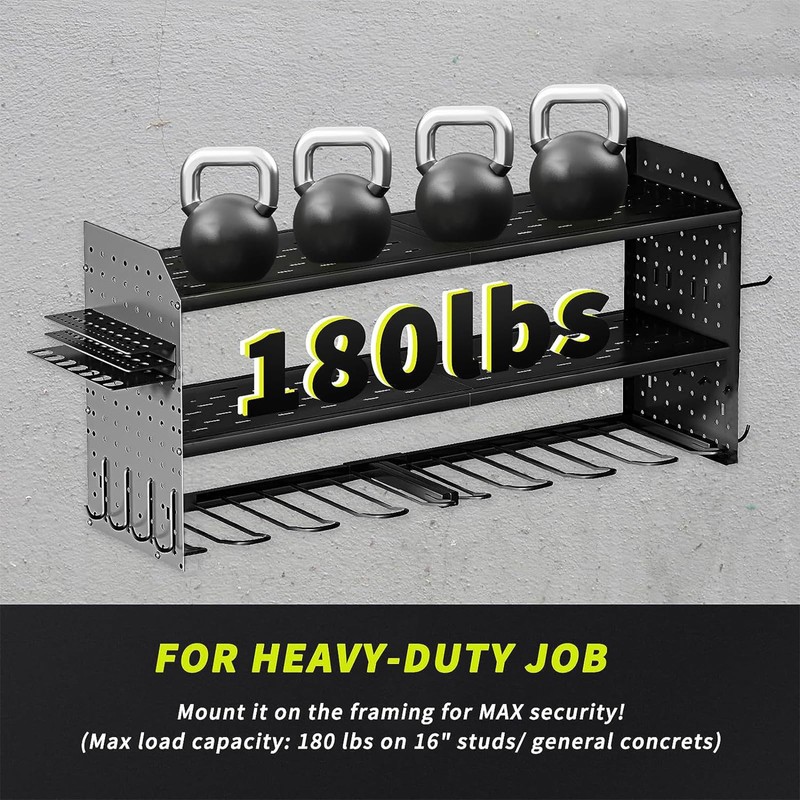 - 5.Easy installation: Our garage shelf is simple to assemble. Just connect the partitions, two side panels, and the middle support using screws, then mount it on the wall. All necessary installation accessories are provided. You can have a perfect garage wall tool organizer assembled within minutes.