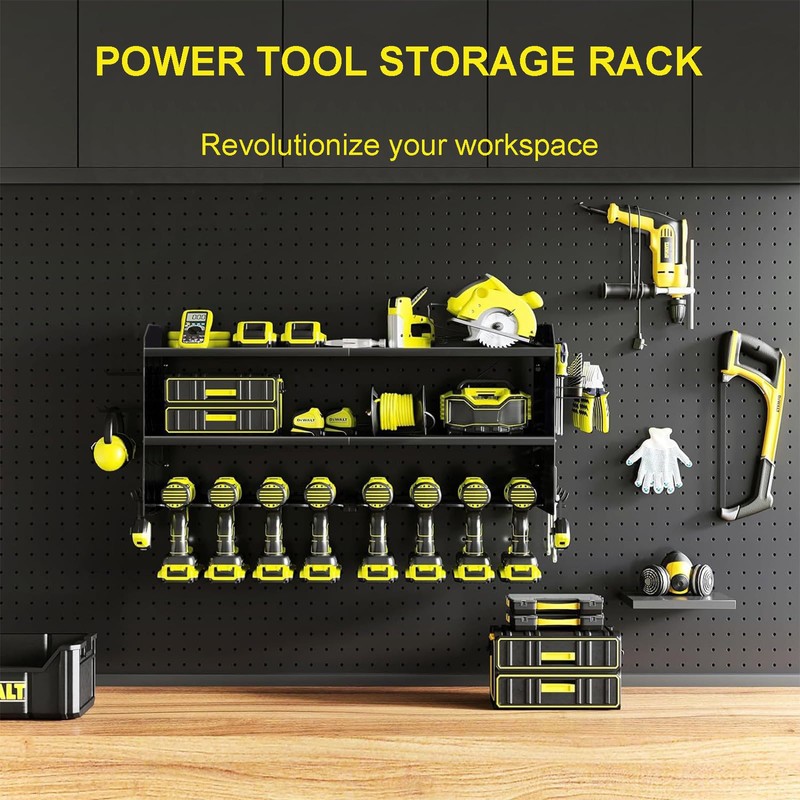 - 2.Increased storage capacity: Our tool storage rack has upgraded to include 8 drill bit holders, doubling the width and enabling you to concentrate more tools in one place, eliminating the hassle of searching for tools.