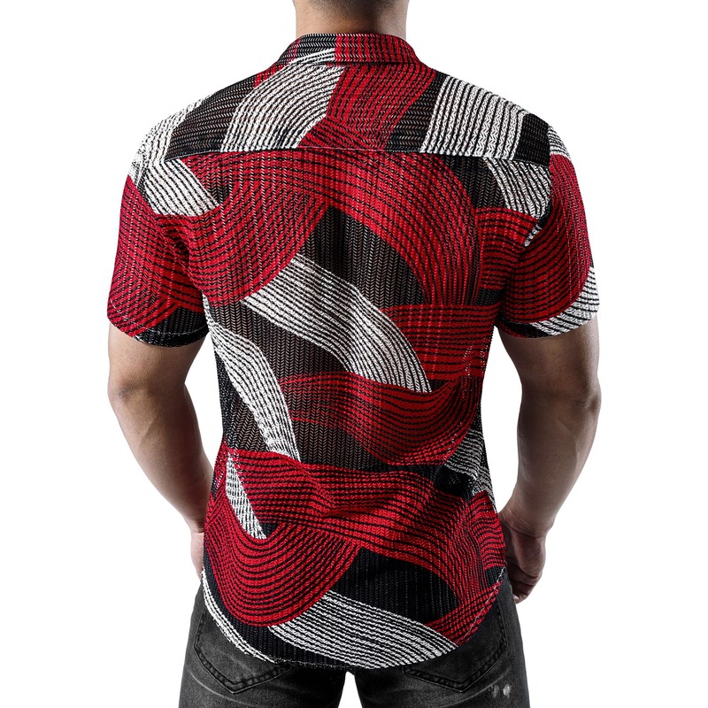 JOGAL Mens Mesh See Through Floral Shirts Stretch Wrinkle-Free Regular Fit Short Sleeve Casual Button Down Summer Shirts Black Red Medium