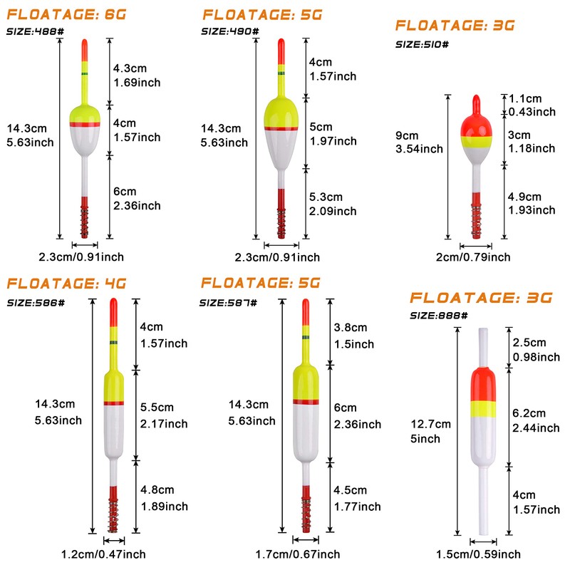 • Bright fishing bobbers have 5 size to choose ,each size 10/20pcs. can satisfy you for a fishing trip
