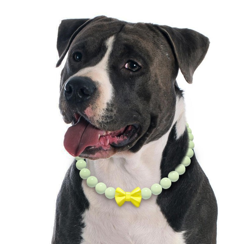 JOGIA Glow in the Dark Dog Collar – Handmade Beaded Dog Necklace with Bow Tie, Adjustable for Small Medium Large Dogs – Soft Glow for Night Walks