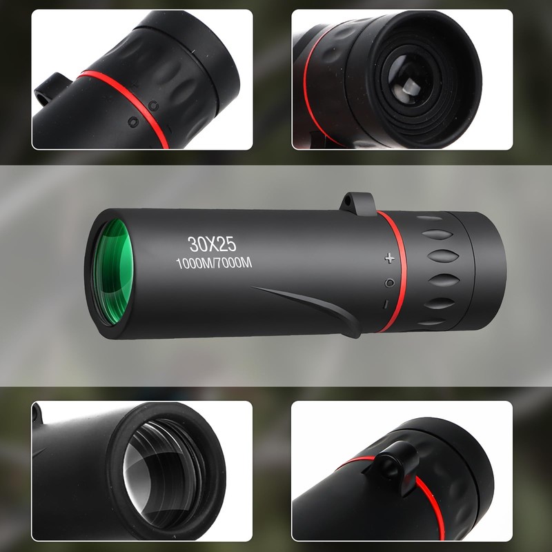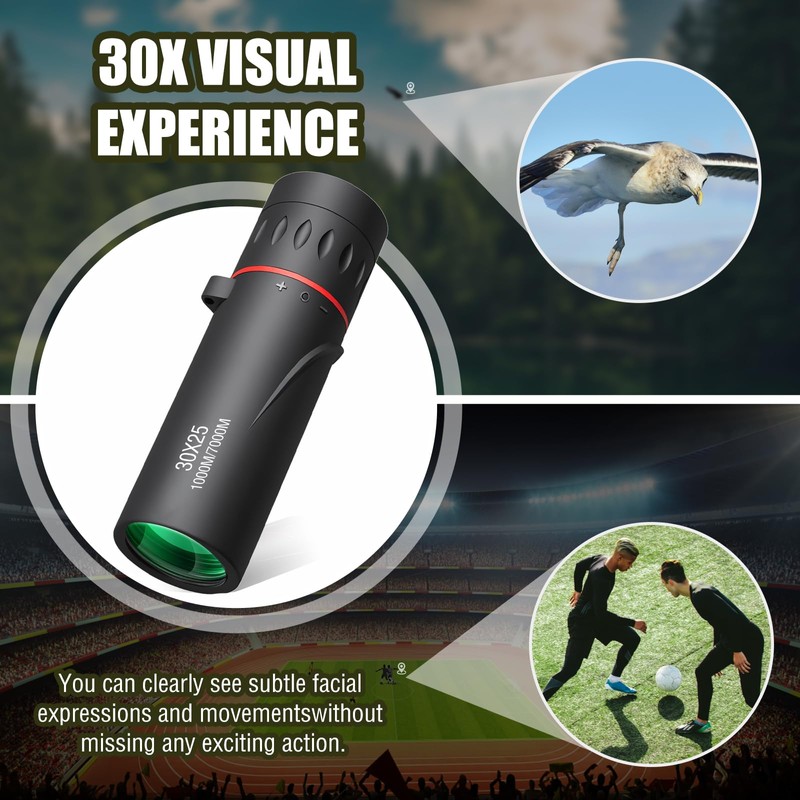 - 300x monocular telescope – Our monocular telescope are powerful with 300x magnification zoom and a 25 mm large field of view, so you can observe and focus on the target in great detail 367 ft/1000 yds away. It is the ideal binoculars for adults and children, for bird watching, hunting, camping, climbing, hiking, safari, travel, opera, concert and sporting events.
