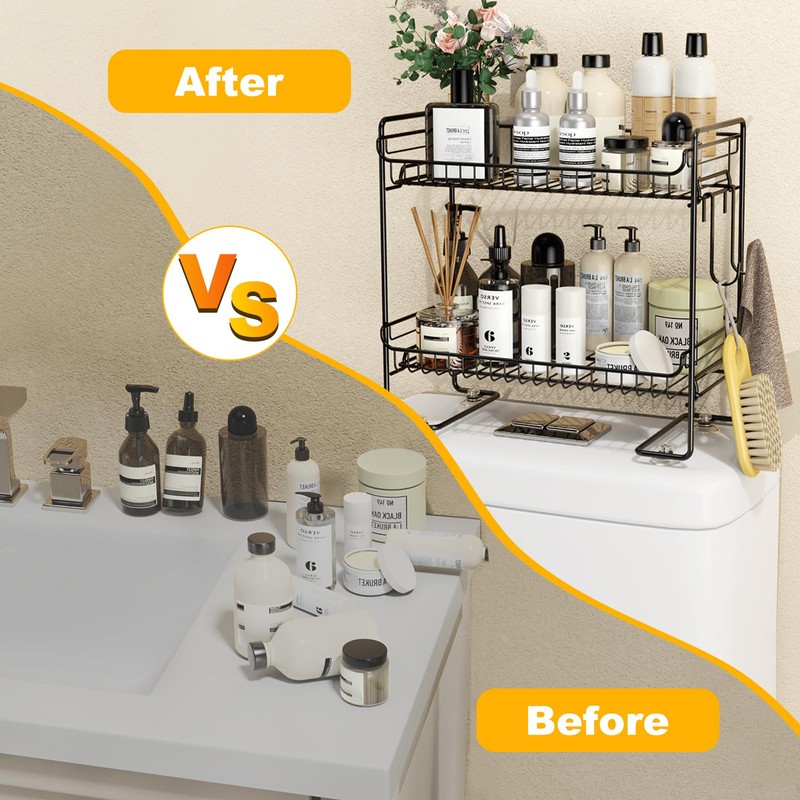 • Widely Applicable: Our 2-tier bathroom storage rack is widely used, you can put it separately on countertop and toilet or on room and desk. It can also be used in the kitchen for organization and storage purposes. Perfect for use in various spaces throughout the home, provide effective ways to save space and keep items organized.