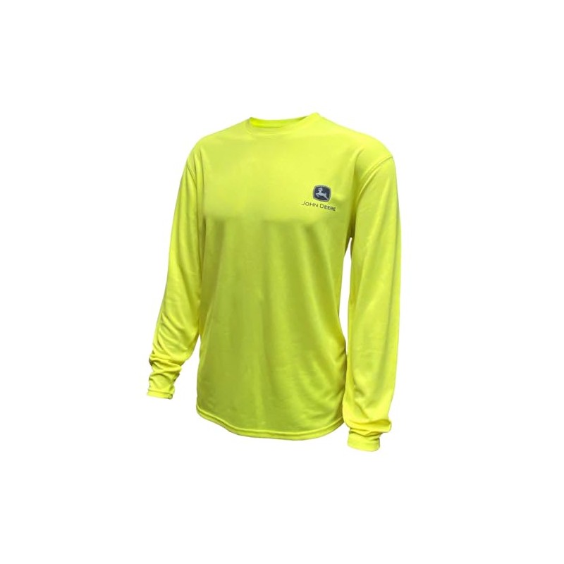 John Deere High Visibility Men's Long Sleeve Breathable Hi Viz Yellow Tee (US, Alpha, Large, Regular, Regular, Hi Viz Yellow)