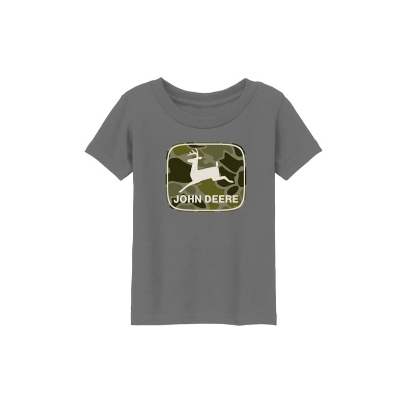 John Deere Kids Boys Camo Logo Short Sleeve Tshirt - Charcoal Gray (US, Alpha, Large, Regular, Charcoal Gray)