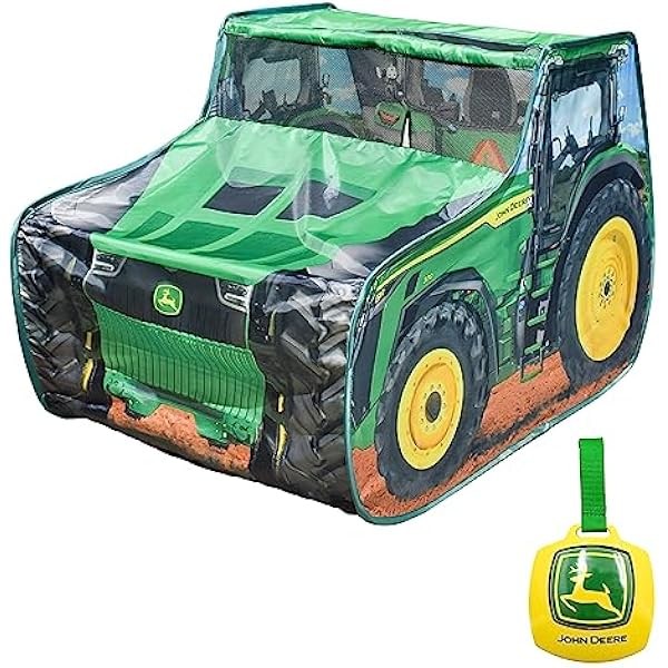 John Deere Pop Up Tent – Tractor Playhouse for Kids | Removable Key Fob with Tractor and Farm Sounds | Vehicle Toys for Toddlers - Sunny Days Entertainment