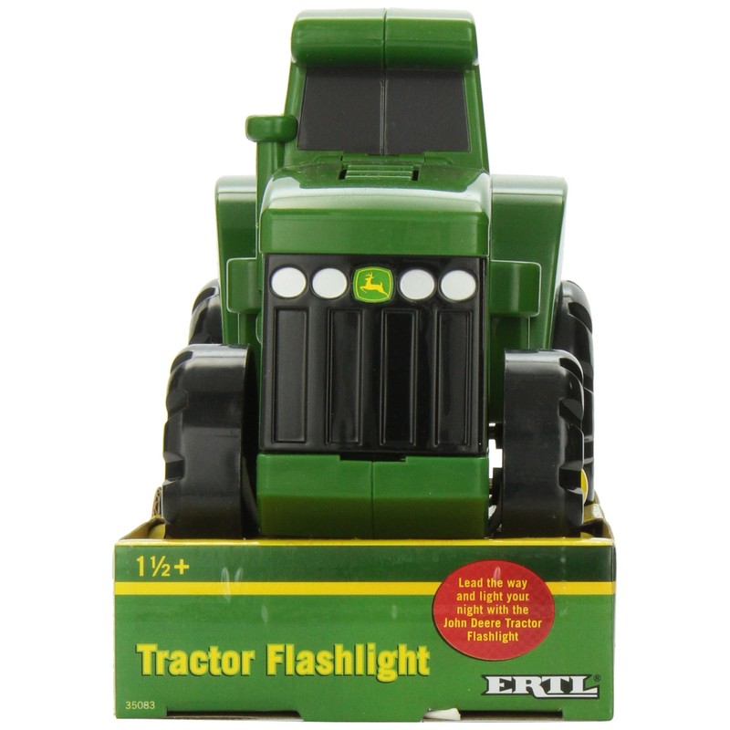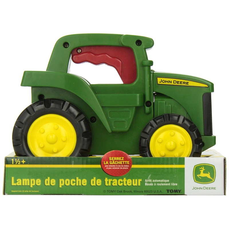 Young John Deere fans will love this tractor flashlight. A simple squeeze of the trigger activates engine sounds and turns on the light. Free rolling wheels for additional play value. Auto light shutoff.