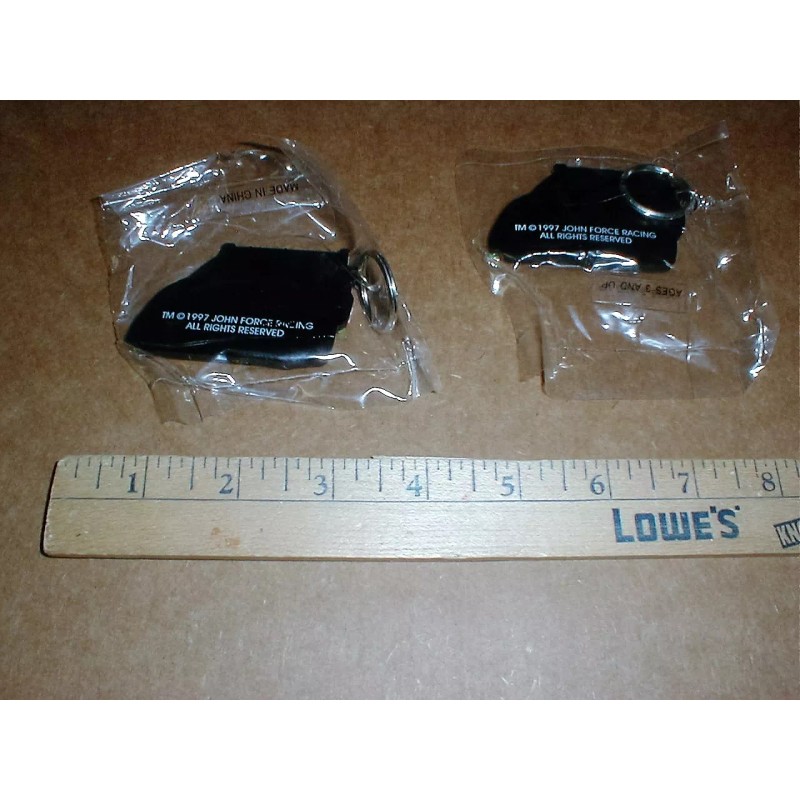 plastic , small , color printed keyring key chain , dated and copyrighted on backside , " TM(C) 1997 JOHN FORCE RACING. ALL RIGHTS RESERVED " sealed in original pack , never used