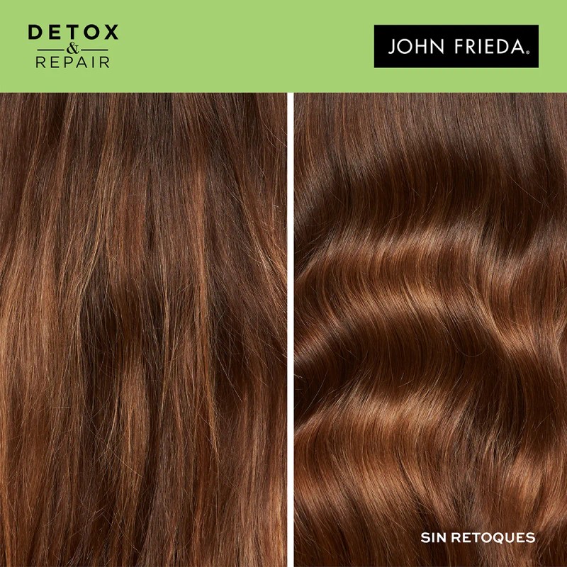 John Frieda Detox and Repair Acondicionador elimina la acumulación de productos y revitaliza el cabello seco y estresado. Detox and Repair hidrata y limpia el cabello roto y lo deja saludable y reparado, con té verde rico en antioxidantes y nutritivo aceite de aguacate.