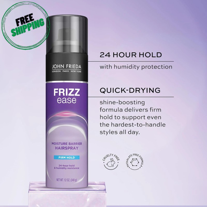 Tame frizz, fight flyaways, and protect your style from the elements with the John Frieda Frizz Ease Moisture Barrier Hairspray—your go-to finishing mist for sleek, long-lasting style control. Whether it’s drizzle, downpour, or humidity, this firm-hold hairspray is your barrier against frizz and weather-induced chaos. 💁♀️🌦️