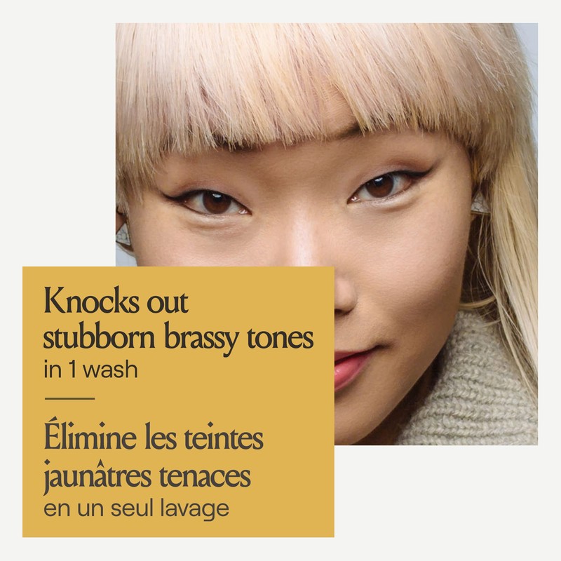 - Great for natural, highlighted, or colour-treated blonde hair, it's specially formulated with crushed violet pigments that neutralize and remove unwanted yellow, brassy hues