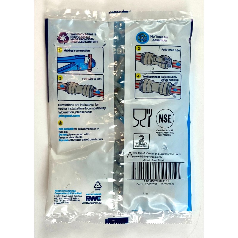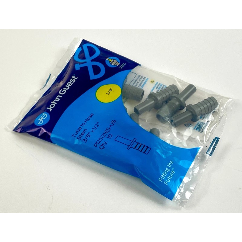 John Guest Tube to Hose Stem 3/8 x 1/2 inch 10-Pack PI251216S Set of 2
