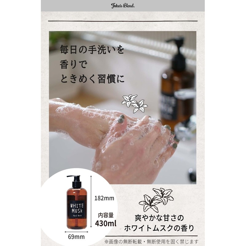 John's Blend OA-JON-80-1 Hand Soap, Liquid, Hand Wash, Moisturizing Ingredients, White Musk, 15.2 fl oz (430 ml)