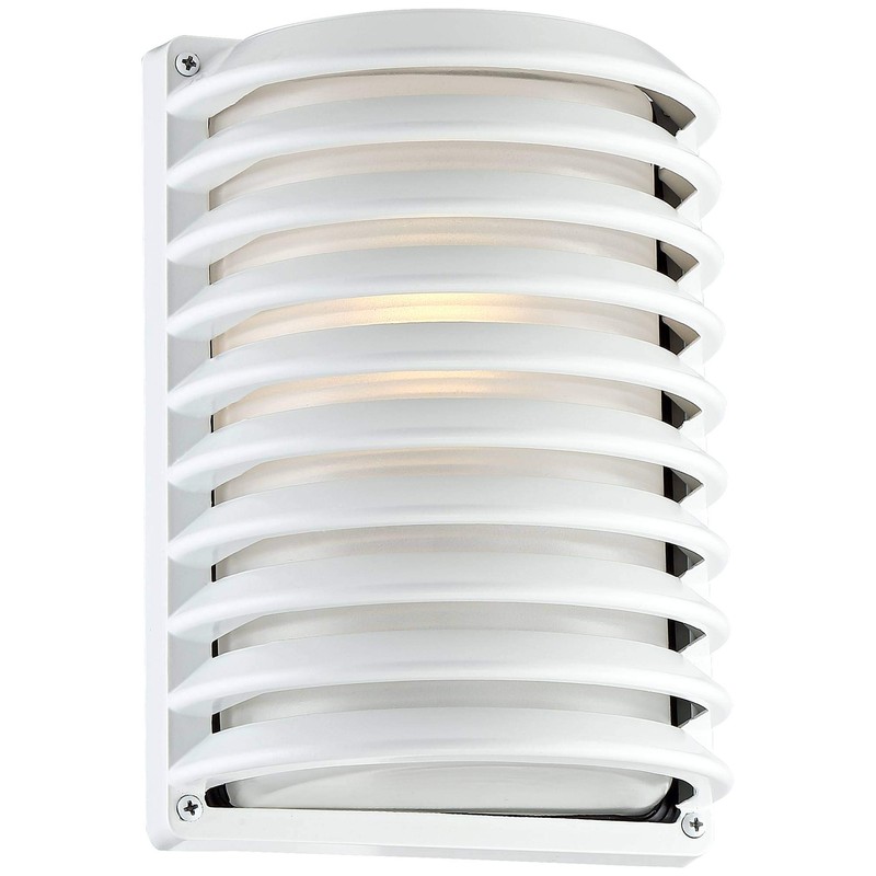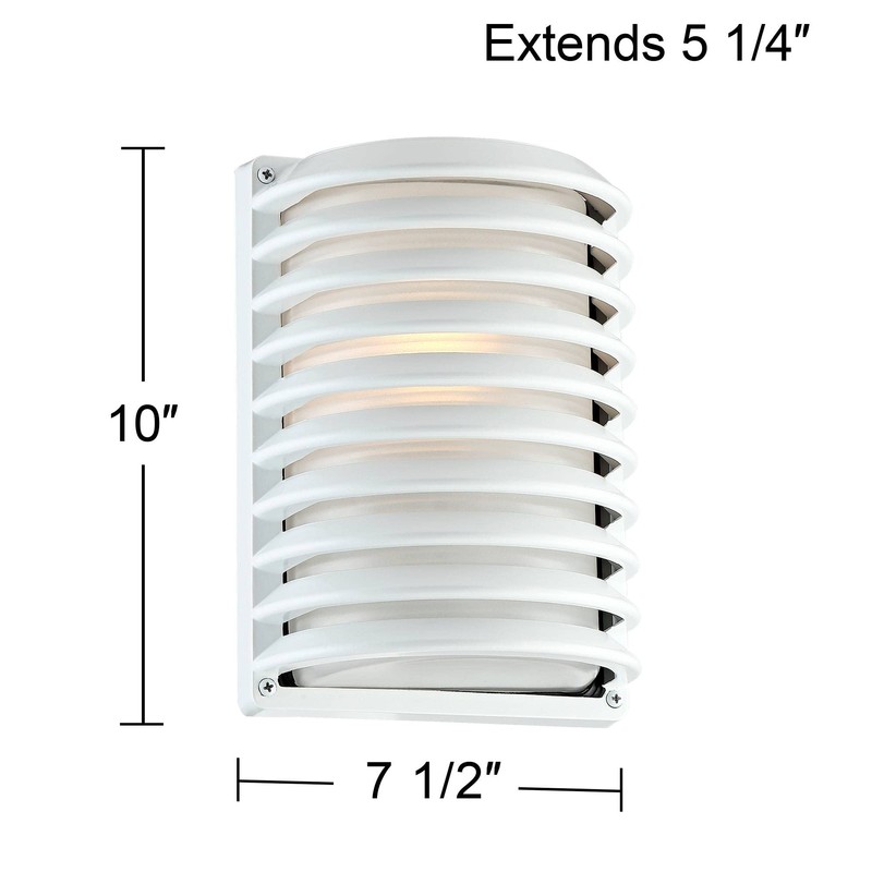 John Timberland White Grid Modern Industrial Outdoor Wall Light Fixture 10" Frosted Glass Shade for Exterior Barn Deck House Porch Yard Patio Outside Garage Front Door Garden Home Roof Lawn