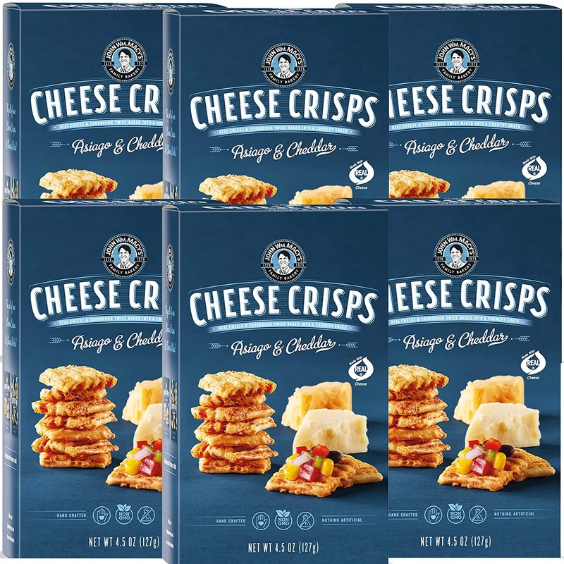 John Wm. Macy's CheeseCrisps | Asiago & Cheddar | Twice Baked Sourdough Crackers Made with 100% Real Aged Cheese, Non GMO, Nothing Artificial | 4.5 OZ. (6 Pack)