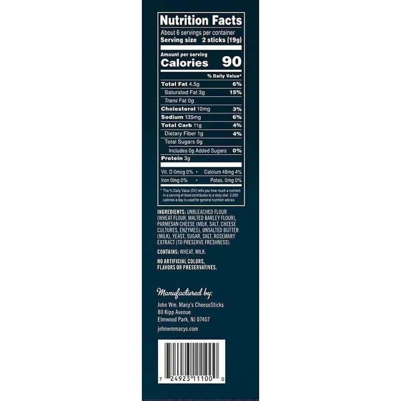 John Wm Macy's Melting Parmesan Cheese Sticks, 4 oz, 6 Pack