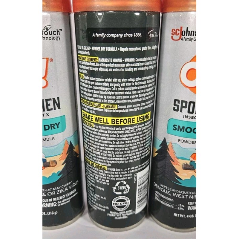 Includes: Three (3) - 4 oz cans of OFF! Sportsmen Smooth and Dry Insect Repellent
