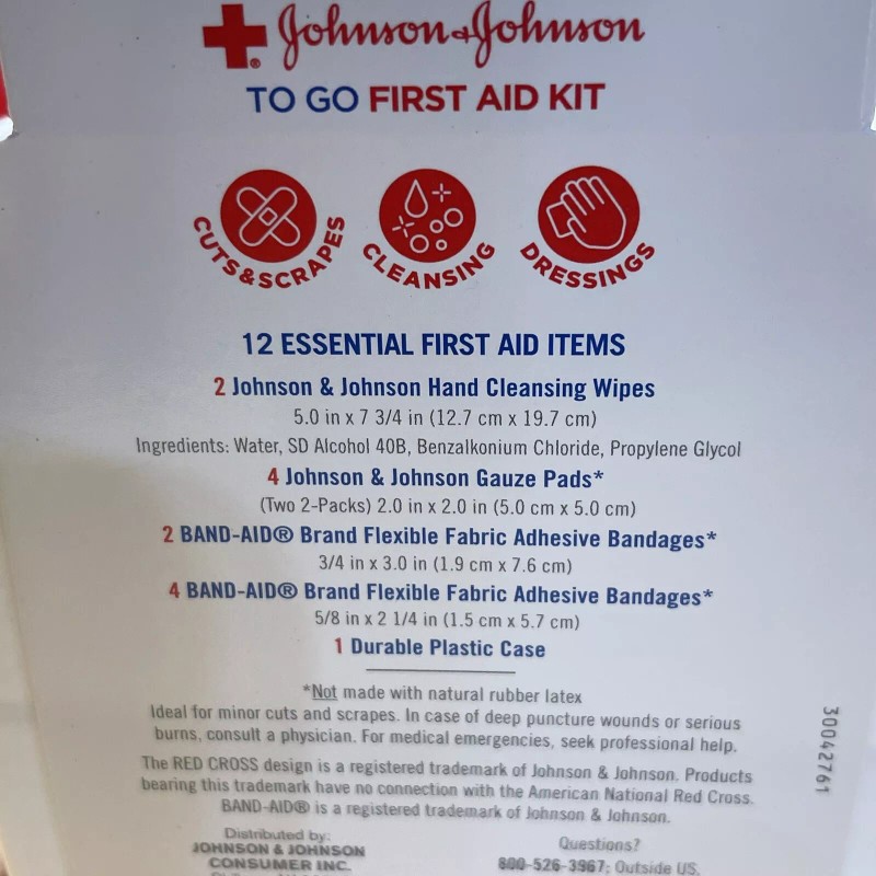 Johnson And Johnson To Go First Aid Kit. Perfect little kits for the gym, purse, backpack, luggage, or to carry in your car. Four kits included.