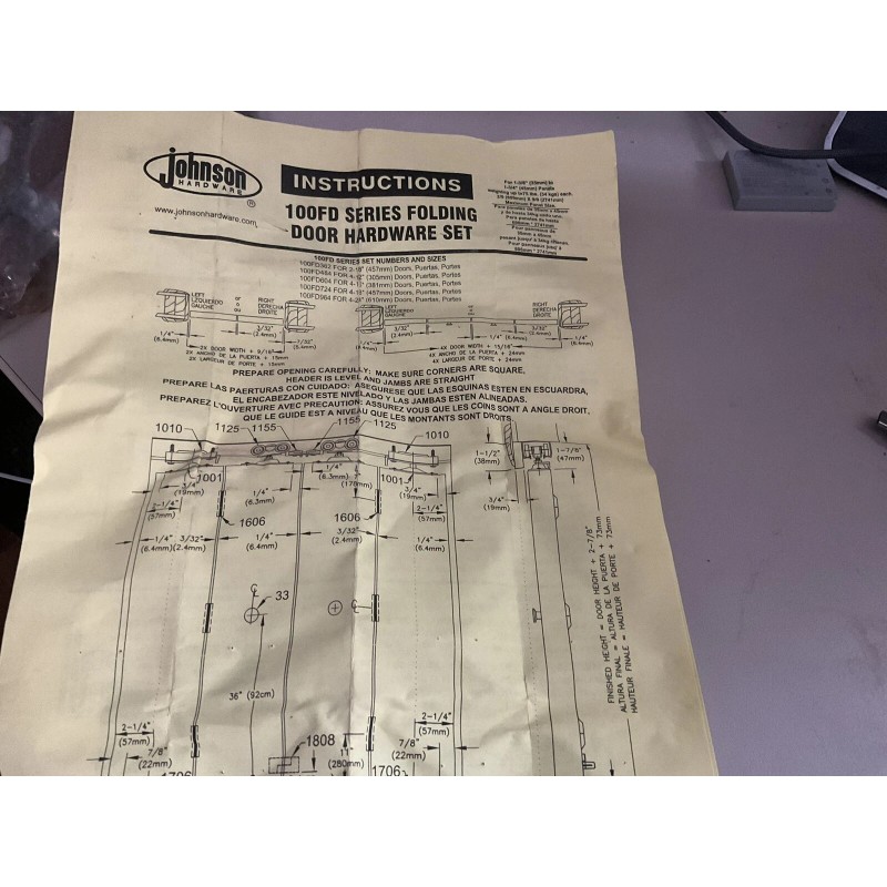 Johnson Hardware 100FD 36" Bi-Fold Hardware Kit, Commercial Grade, Brass Tone
