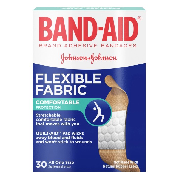 Johnson & Johnson Band Aid Flexible Fabric Adhesive Bandages Comfortable Protection One Size 30ct