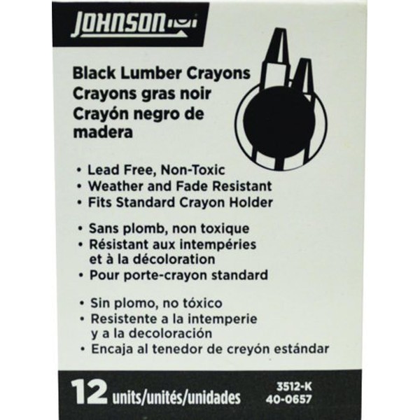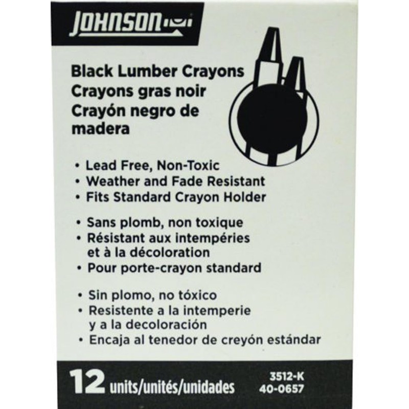 Johnson Level & Tool 3512-K Lumber Crayon, Black, 12-Pack