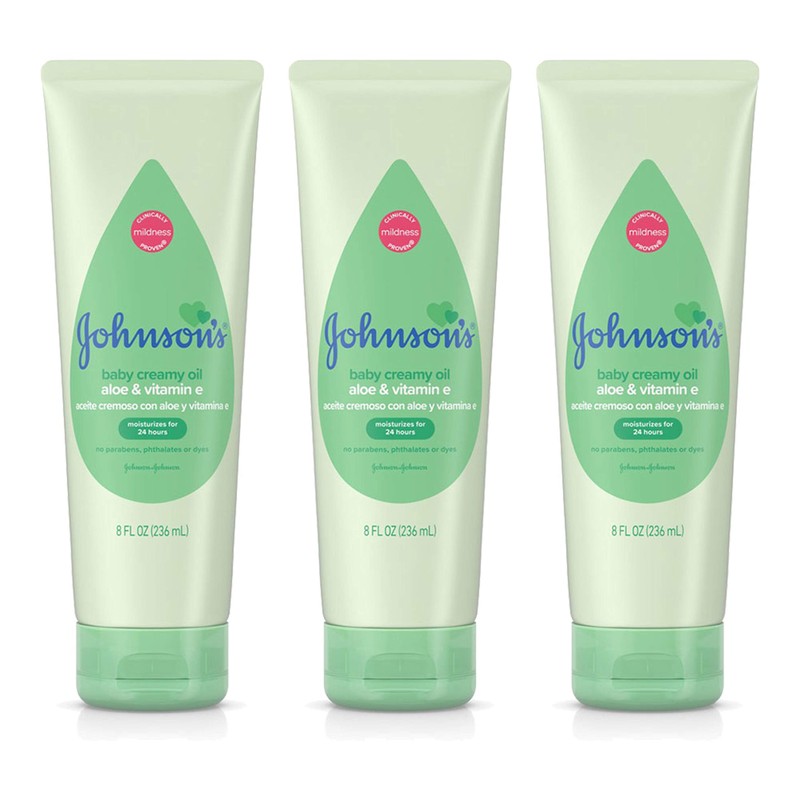 Johnson's Baby Creamy Oil with Aloe & Vitamin E, Moisturizing Baby Body Lotion for Delicate Skin, Hypoallergenic and Free of Parabens, Phthalates, and Dyes, 8 Fl Oz, Pack of 3