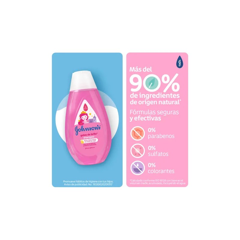 El Shampoo Infantil Johnson’s Gotas de Brillo 750 ml es una fórmula suave especialmente diseñada para bebés y niños, que limpia delicadamente sin resecar el cuero cabelludo. Enriquecido con cera natural y agentes acondicionadores, deja el cabello brillante, manejable y con un aroma fresco y delicado. Ideal para uso diario y apto para toda la familia.