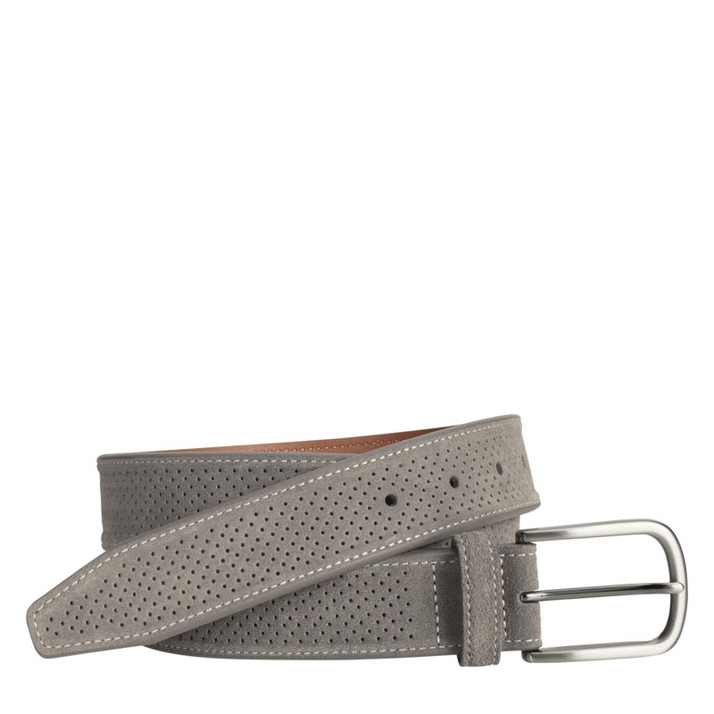 Johnston & Murphy® Perforated Suede Belt for Men – Leather Lining – Suede Keeper – Satin Nickel Buckle Grey 40 One Size