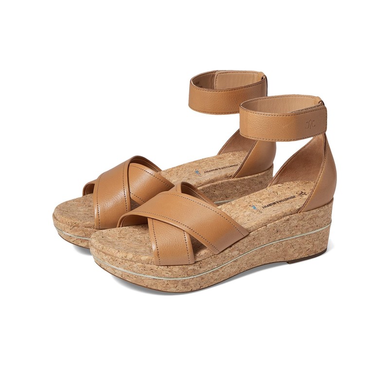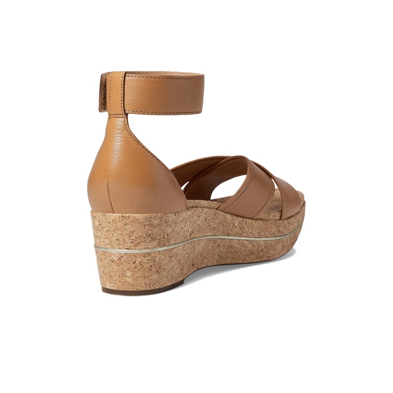 Johnston & Murphy Women's Gigi Cross Band Sandal Wedge, Tan, 8.5