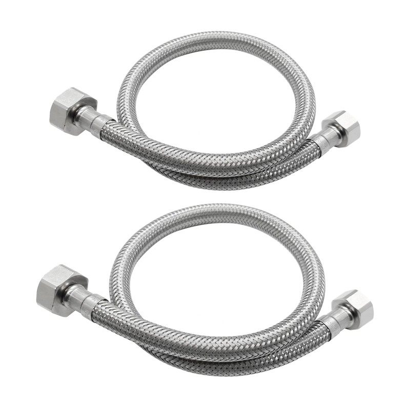 - Dimensions information: flexible connection hoses with 50 cm length and with 2 connection screws 1/2 inch x 3/8 inch for easy and safe installation. Material: stainless steel. Please confirm the size of the tap to be connected before ordering. Note: Cannot be used as an extension tube.