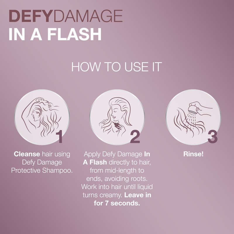 - Joico Defy Damage In A Flash 7-Second Bond Builder provides damage protection, extra boost of resilience and shine, replenishes moisture, reduces hair breakage, leaves hair silky smooth, weightless, and healthy-looking for a perfect everyday look.