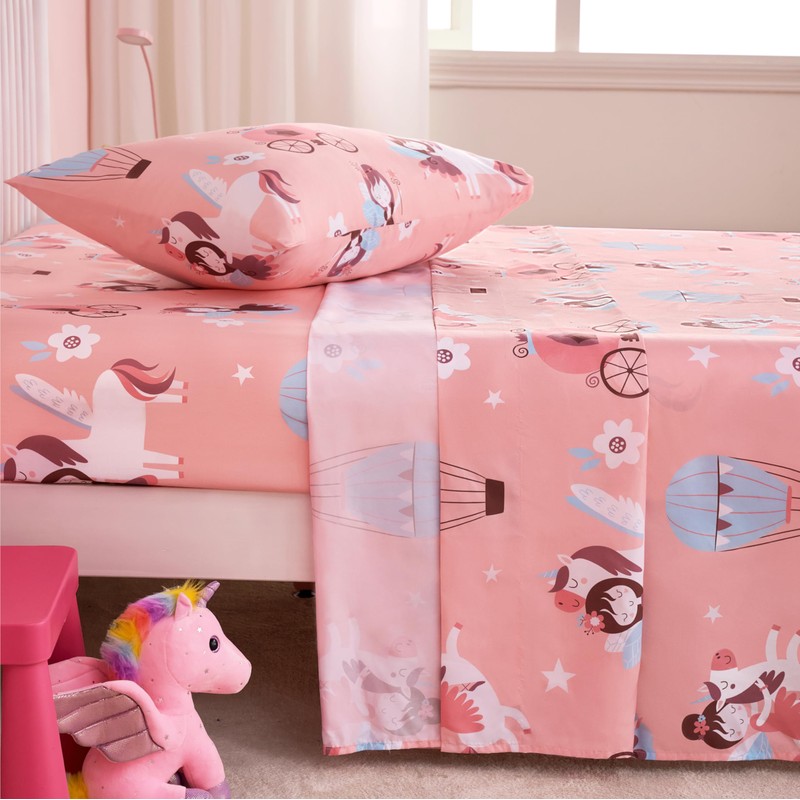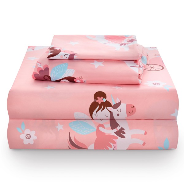 Joiedomi Kids Twin Sheet Set Princess & Unicorn - 3 Piece Soft Microfiber Bed Sheets - Deep Pocket Wrinkle Free, Cozy Toddler Bedding Set, Fade Resistant Breathable for Boys Girls Teens